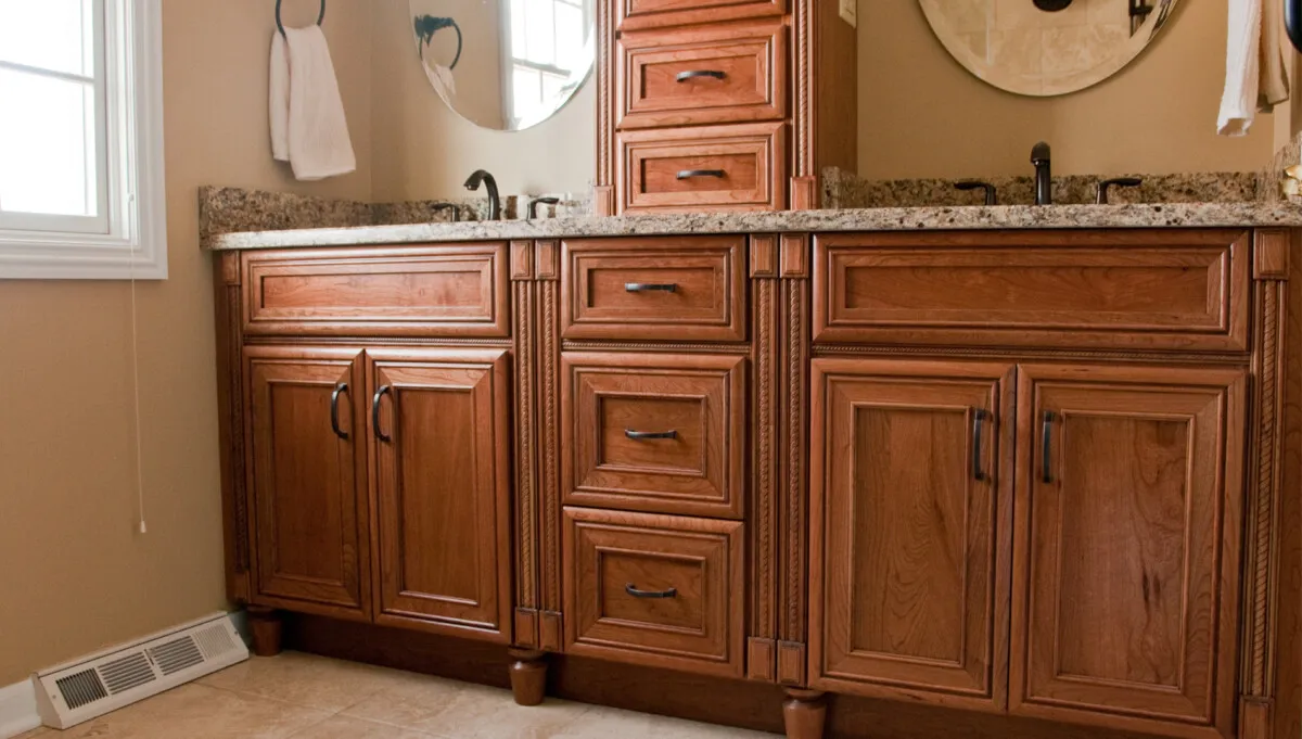 Bathroom cabinetry must withstand moisture and daily use. Our custom vanity solutions include: